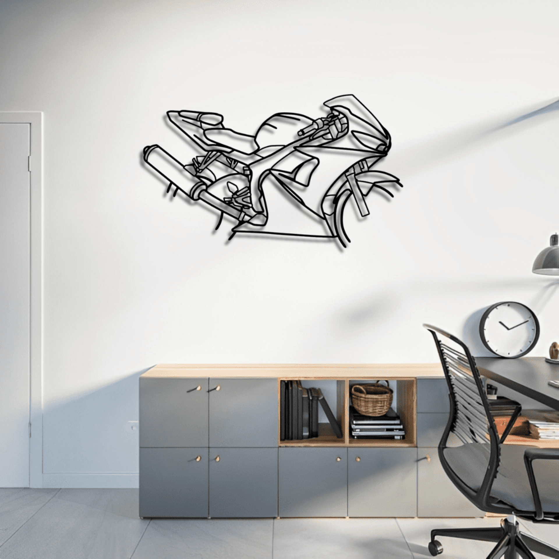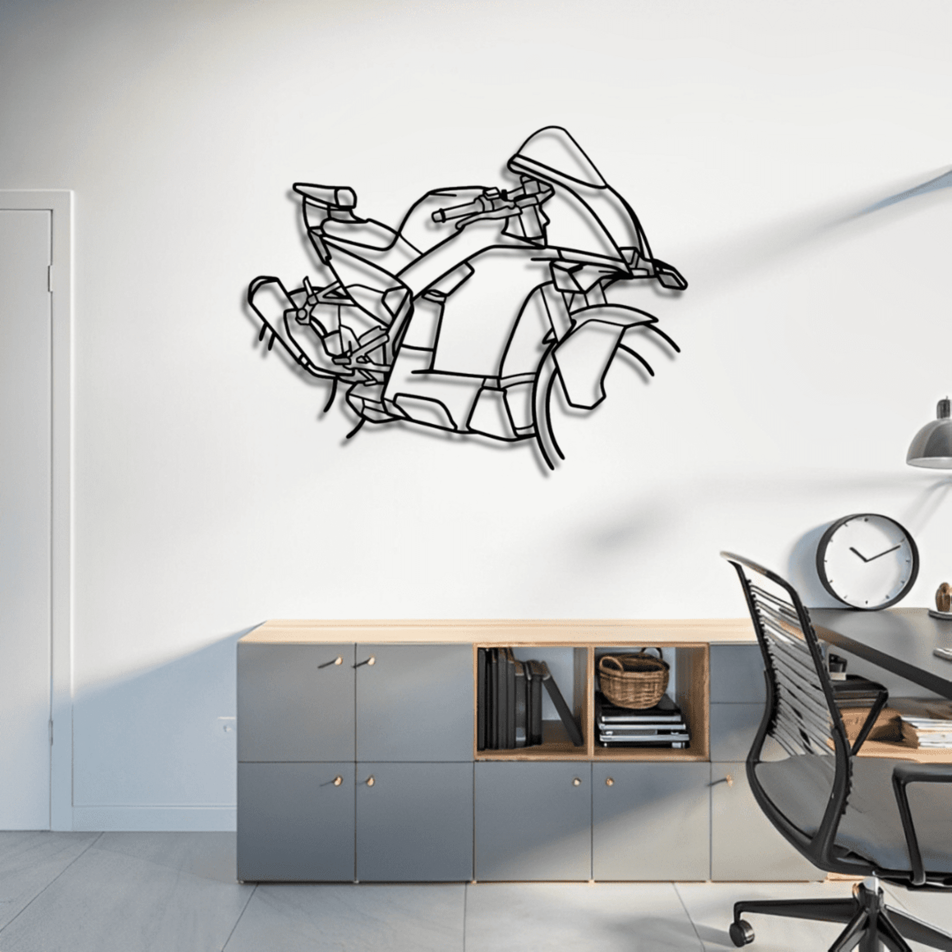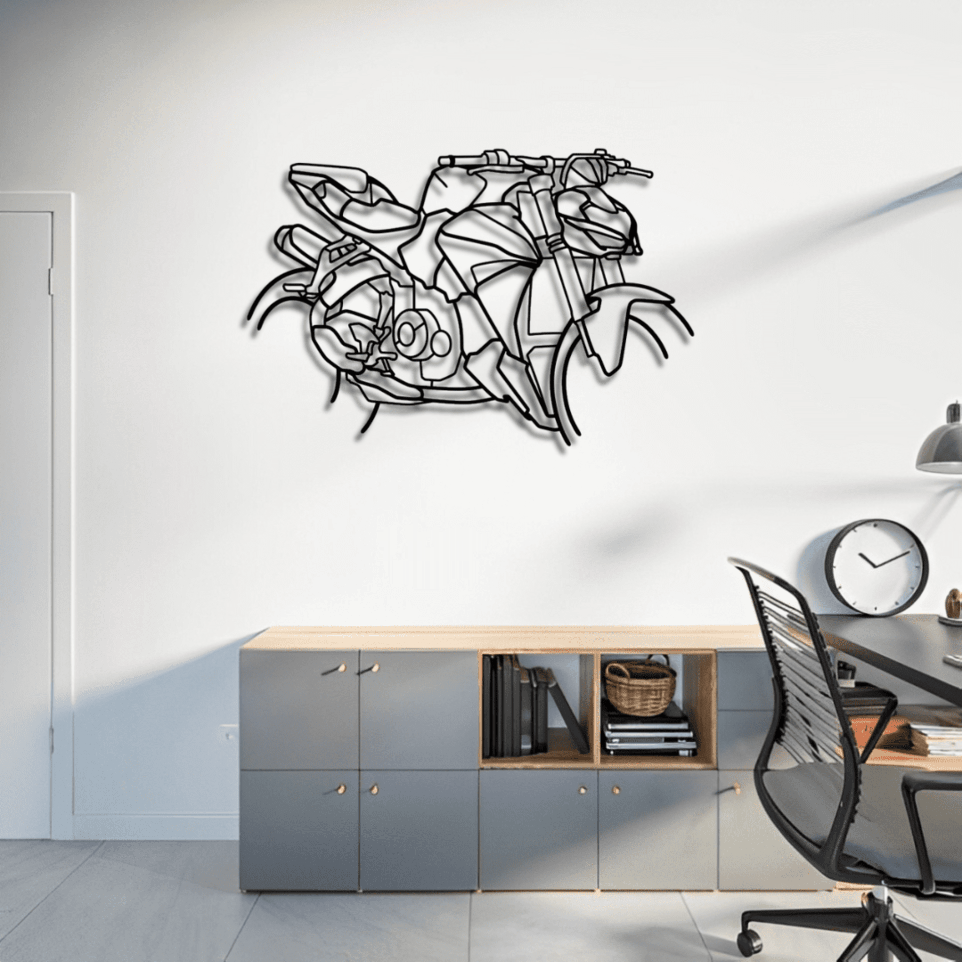 Explora la colección BLOOP-S, donde la pasión por las motos se transforma en arte para tu pared. Cada silueta está diseñada con precisión en madera MDF con acabado negro, creando un impacto visual único que resalta el carácter y la esencia de cada motocicleta. Disponible en dos tamaños, es el detalle perfecto para darle personalidad a tu espacio o sorprender a un auténtico amante de las dos ruedas. ¡Convierte tu pasión en decoración con BLOOP-S!